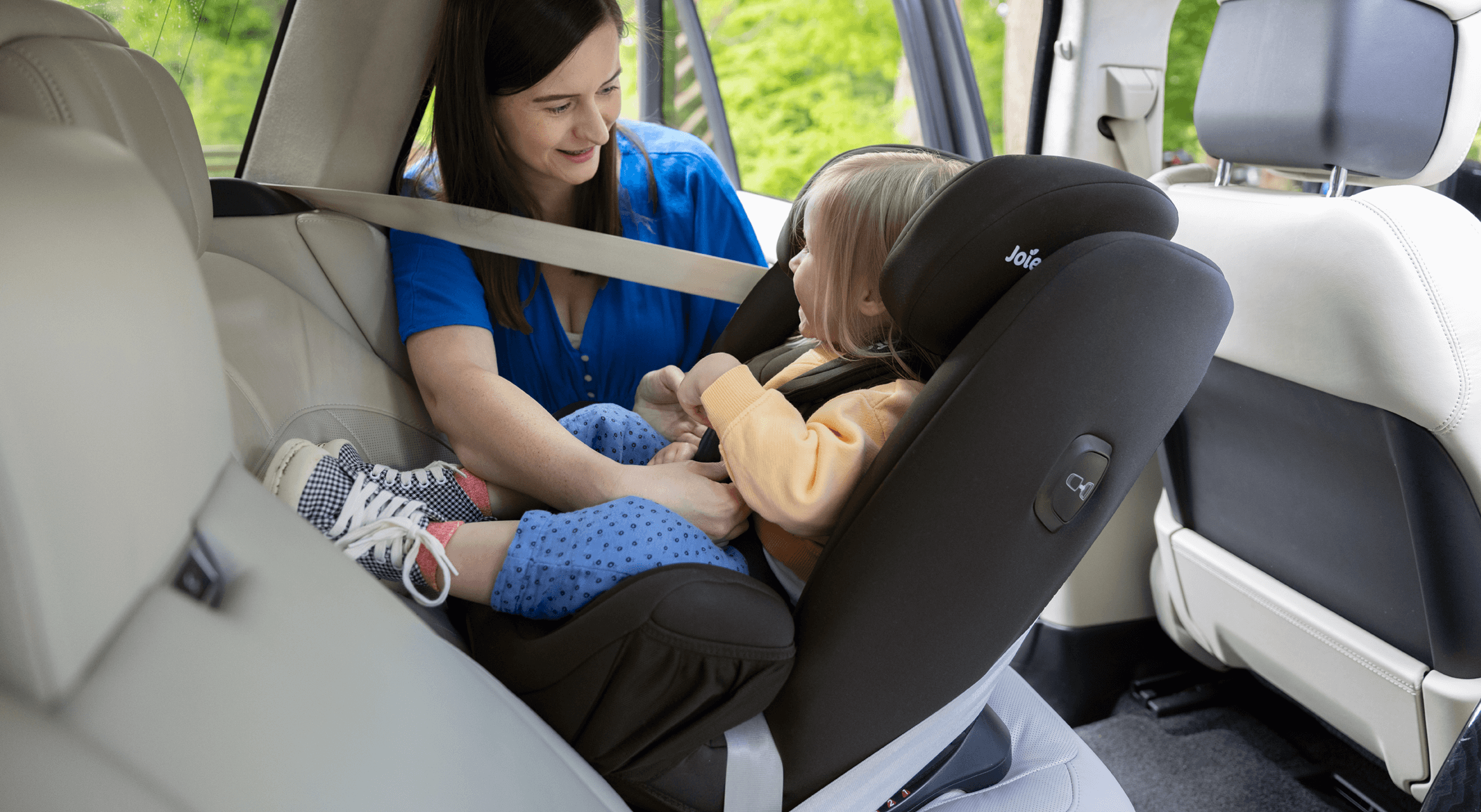 - Die farblich markierte Gurtführung macht das Anschnallen unkompliziert und zwei Gurthalter stellen sicher, dass der Fahrzeuggurt nicht verrutscht